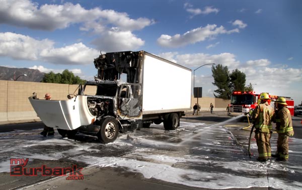 A truck fire on the freeway Wednesday, December 4, sent a large amount of smoke in the air that could be seen throughout Burbank. Burbank Fire Department, along with an Engine company from the Glendale Fire Department, responded to the truck fire on the northbound I-5 freeway at the Lincoln Street exit.