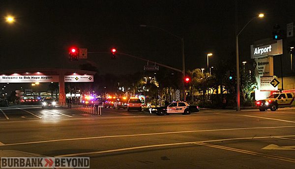 Bob Hope Airport Police called on the LASO Bomb Squad, Burbank Fire Department, Airport Fire Crash Rigs and Burbank Police to assist in shutting all traffic coming into the airport at Hollywood Way and Thornton.
