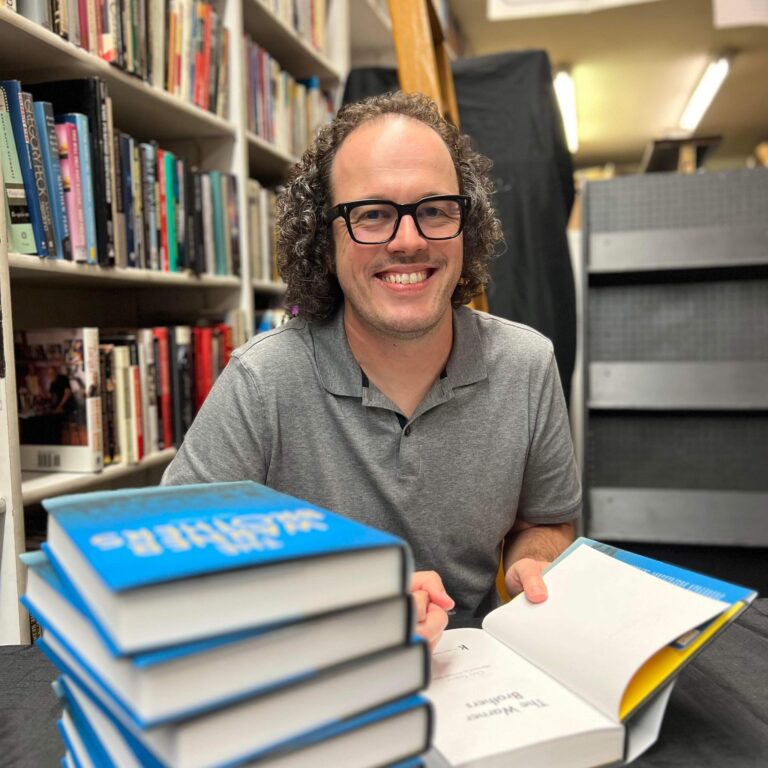 Author Chris Yogerst discusses his most recent book, The Warner Brothers, with Warner Bros. Discovery Librarian George Feltenstein on Thursday evening, November 16, at the Buena Vista branch of the Burbank Public Library.