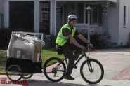 In speaking to Kevin Soule, a holiday employee, he enjoys the bike detail. He’s supplied all the equipment, including helmet, safety vest bike with attached trailer.