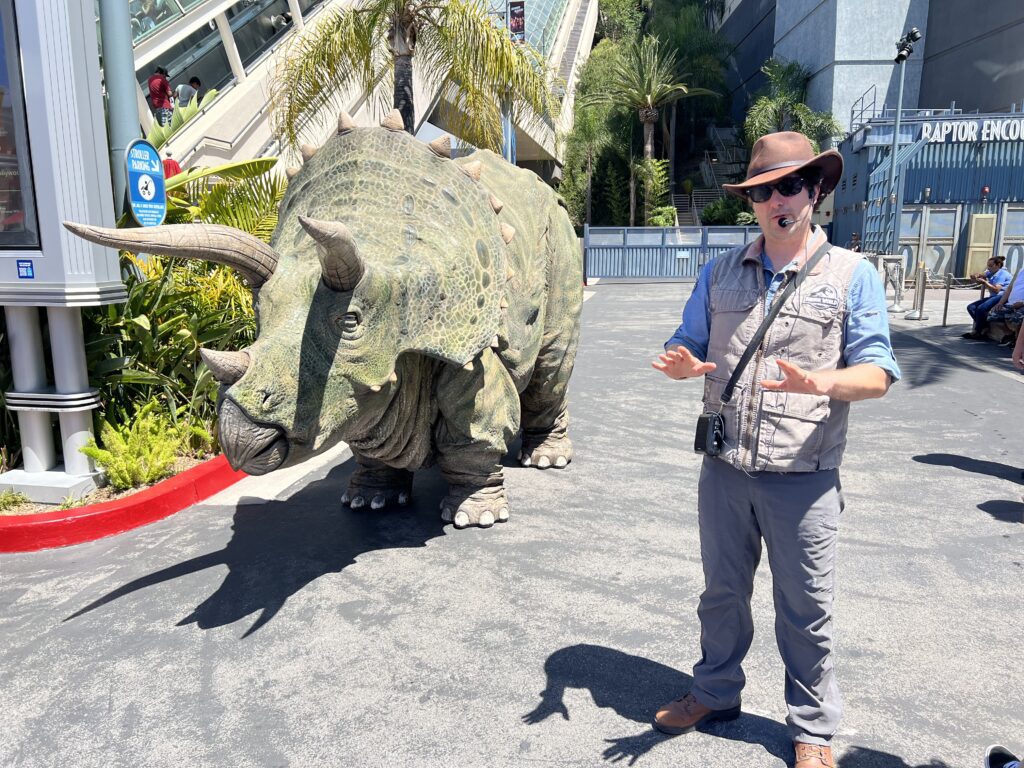 Dino Meet and Greets: Other than Blue, Jurassic World handlers rotate different dinosaurs to bring out and meet guests including one of the film’s gentle giants, the Triceratops. Guests will learn interesting facts about this Cretaceous creature and some will even get to interact with her to show how smart she is. You might also encounter a juvenile Velociraptor that is held in the arms of a handler that can move and coo just like a real dino might.