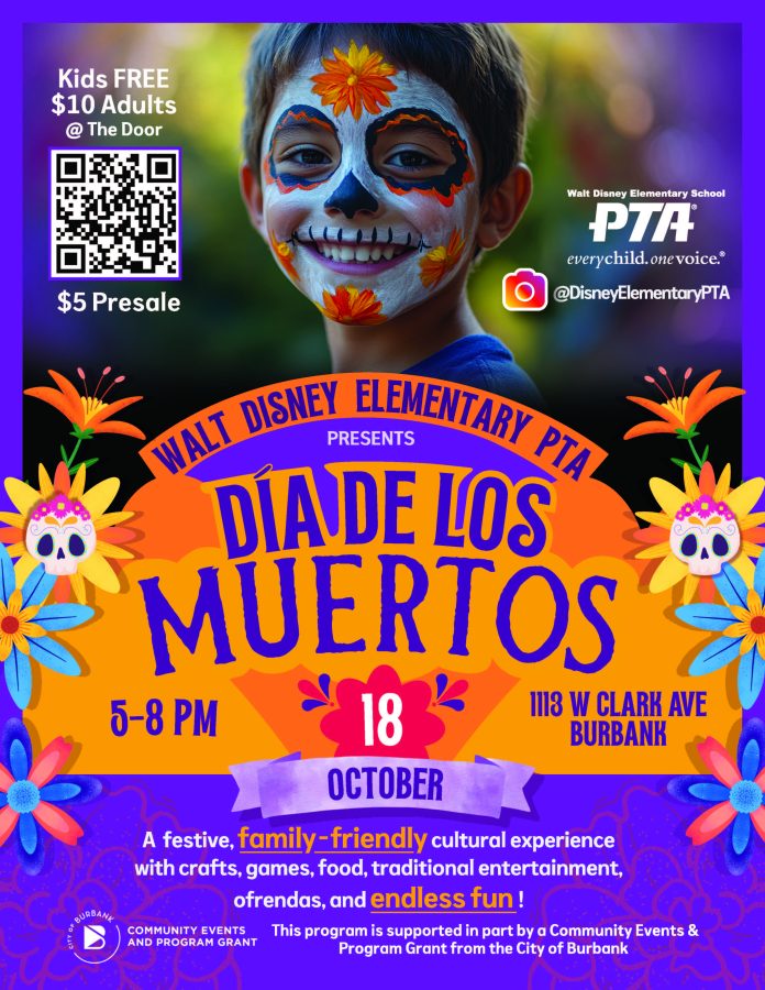 “Our Día de los Muertos celebration is a powerful way to honor loved ones, share stories, and celebrate the diverse cultures that make Burbank such a vibrant community,” said Myra Stephenson, President of the Walt Disney Elementary PTA. “Each year, this festival reminds us of what makes the Disney community so special. Seeing our campus transform into a sea of color and joy, at the hands of so many dedicated volunteers and community members is truly magical. We are incredibly grateful to the City of Burbank and our local sponsors for helping bring this event to life.”
