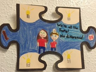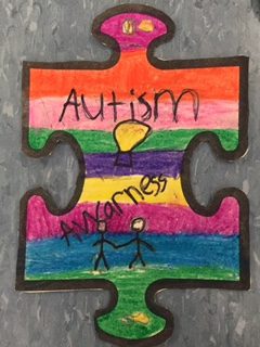 Students have decorated paper puzzle pieces, the common symbol for autism, and the artwork currently lines the Washington Elementary hallways. Each class at the school has collected questions from students about autism and the LEAP teachers answer a few questions at every Friday morning assembly throughout April.