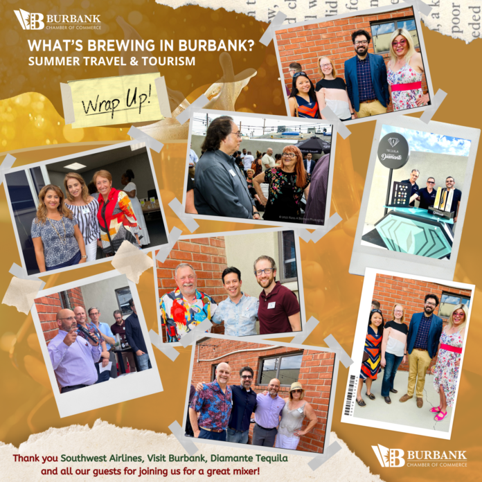 The Burbank Chamber of Commerce welcomes Visit Burbank and Southwest Airlines as guest speakers for our What’s Brewing in Burbank event. We enjoyed listening to our speakers discuss their initiatives and mingling with our friends from the Burbank community while tasting the Diamante tequila.