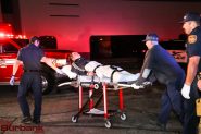 Burbank police broke out the passenger window to get the woman out of the car since she did not comply with their orders immediately. Paramedics were called to check her over and took her to a local hospital for treatment. A pet in the truck was taken to the Burbank Animal Shelter.